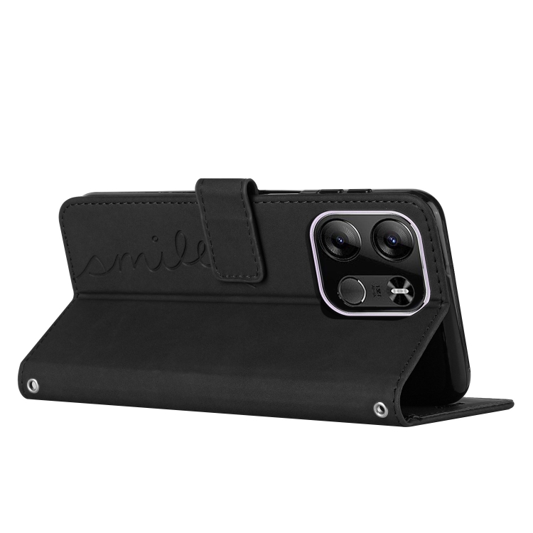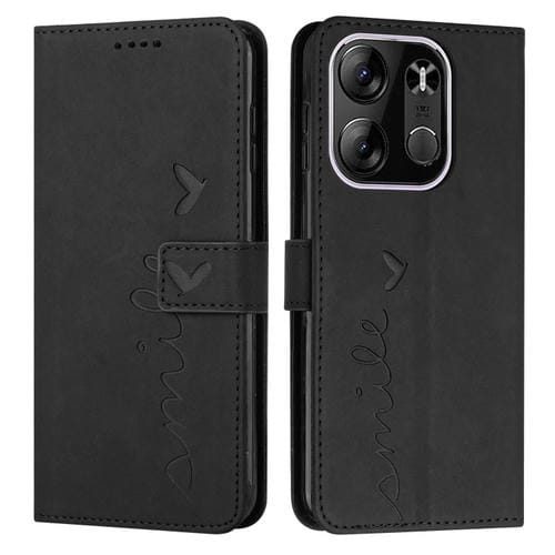 Funda de Cuero para Tecno Pop 7 Pro Skin Feel con Patrón de Corazón (Negro)