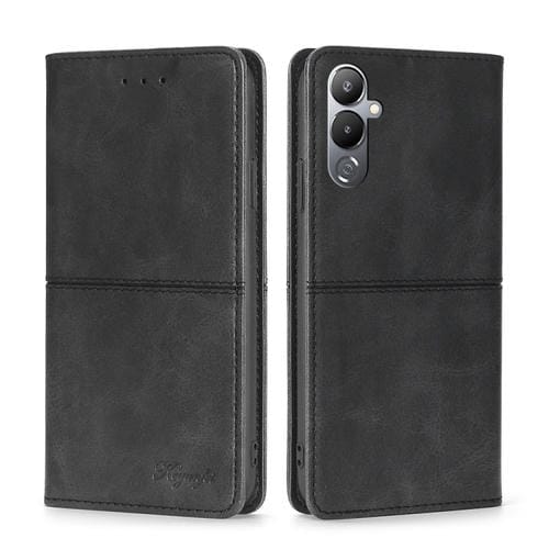 Funda de Cuero para Tecno Pova 4 con Tapa Horizontal Magnética y Textura de Vaca (Negro)