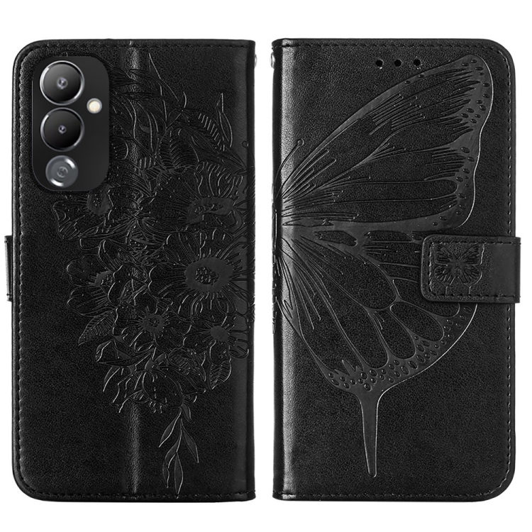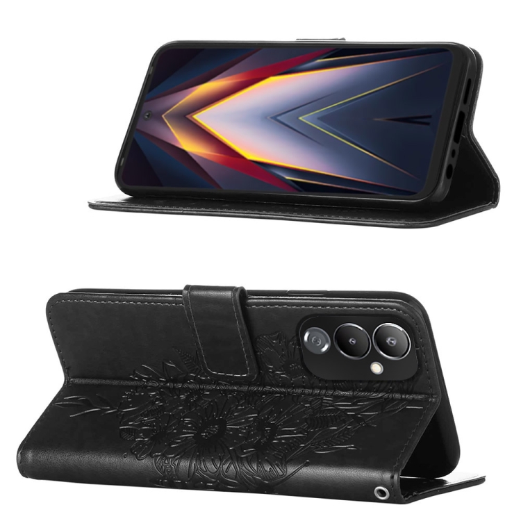 Funda de Cuero para Tecno Pova 4 Lg7N con Tapa de Mariposa en Relieve (Negro)