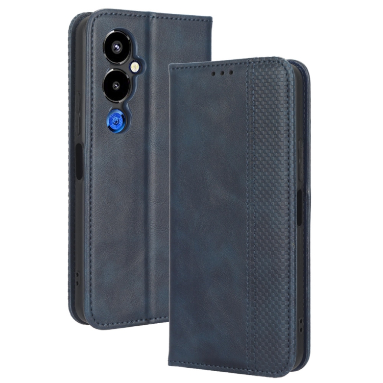 Funda de Cuero para Tecno Pova 4 Pro con Hebilla Magnética y Textura Retro (Azul)