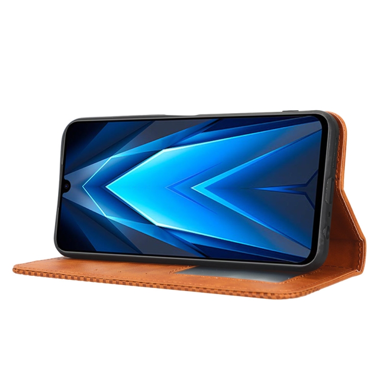 Funda de Cuero para Tecno Pova 4 Pro con Hebilla Magnética y Textura Retro (Marrón)