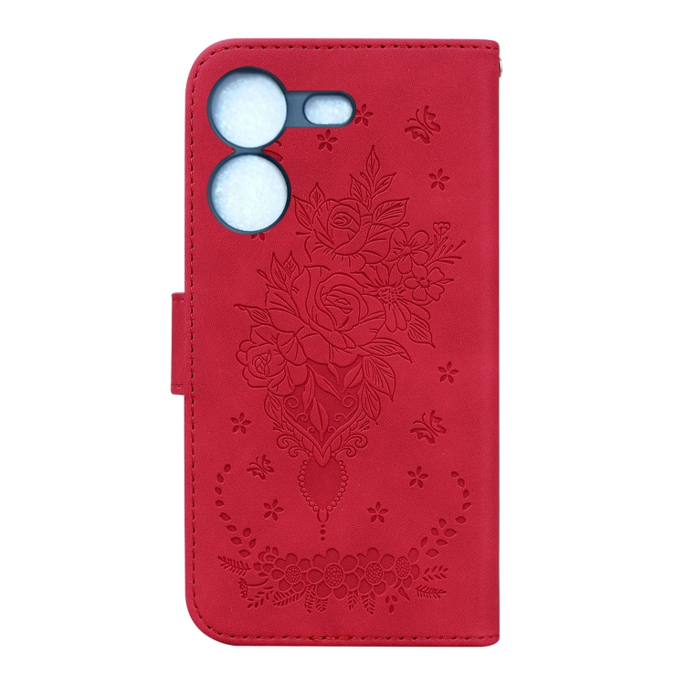 Funda para Tecno Pova 5 Butterfly Rose de Cuero En Relieve (Rojo)