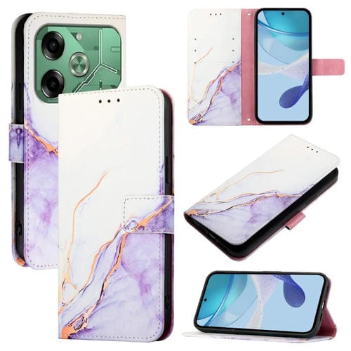 Funda de Cuero con Tapa para Tecno Pova 6 4G Pt003 con Patrón Mármol (Blanco Morado)