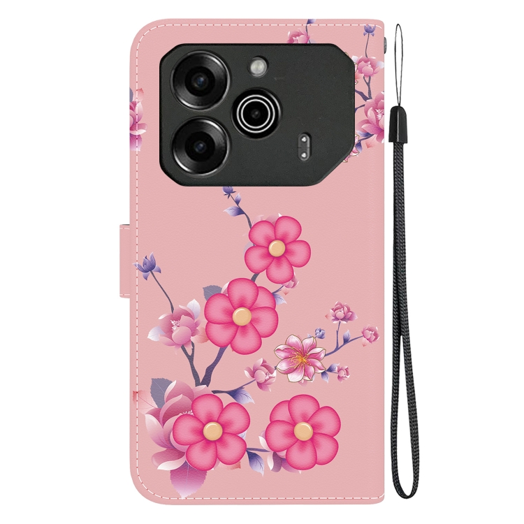 Funda para Tecno Pova 6 Pro y Pova 6 de Cuero con Dibujo Coloreado y Textura de Cristal (Flores de Cerezo)
