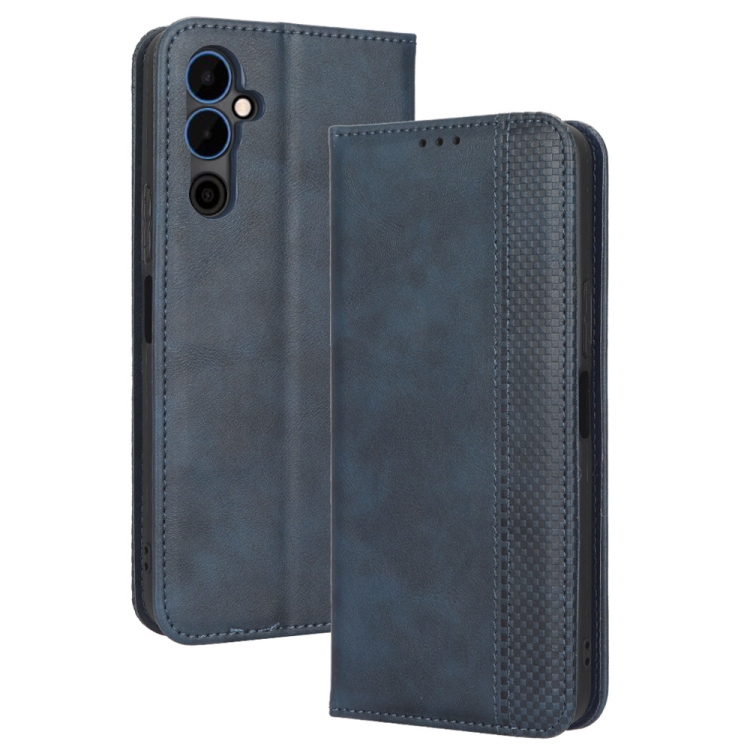 Funda de Cuero para Tecno Pova Neo 2 con Hebilla Magnética y Textura Retro (Azul)