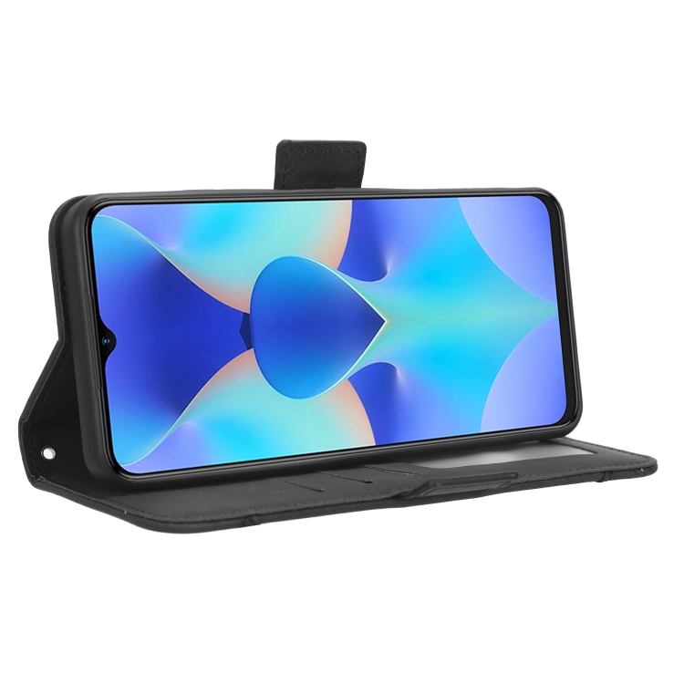 Funda de Cuero para Tecno Spark 10 4G con Textura Becerro y Ranuras para Tarjetas (Negro)