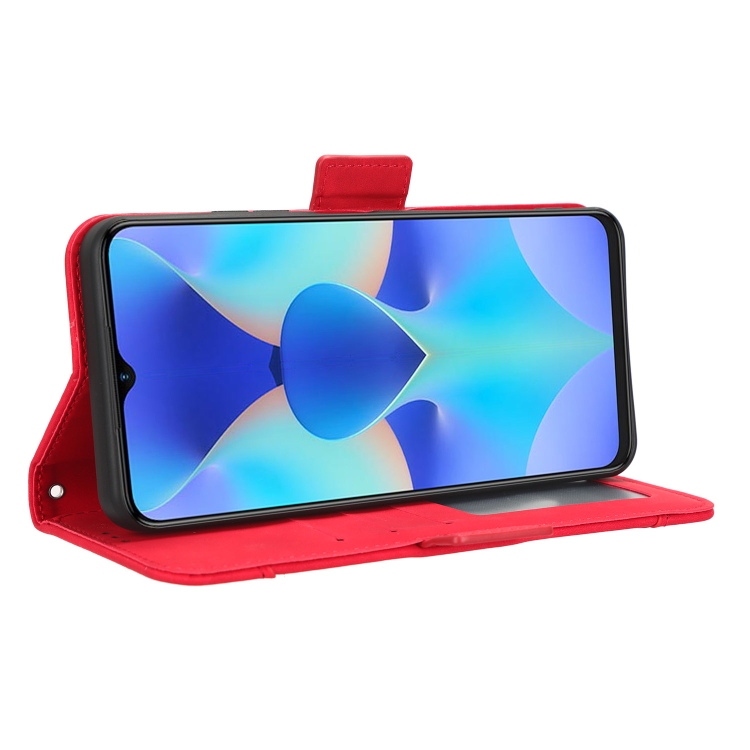 Funda de Cuero para Tecno Spark 10 4G Skin Feel con Ranuras para Tarjetas (Rojo)