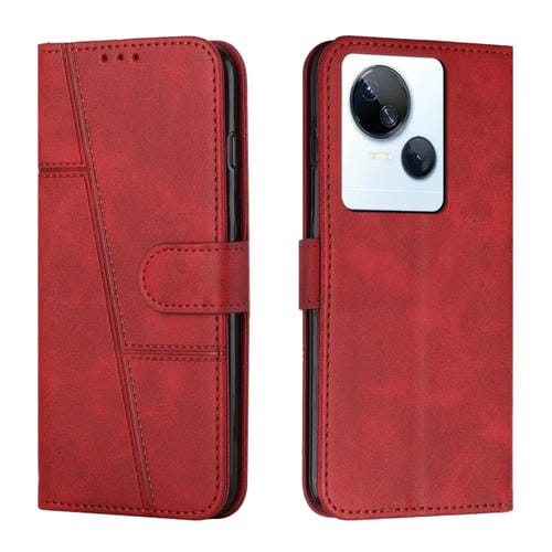 Funda de Cuero para Tecno Spark 10 5G con Costura y Hebilla (Rojo)