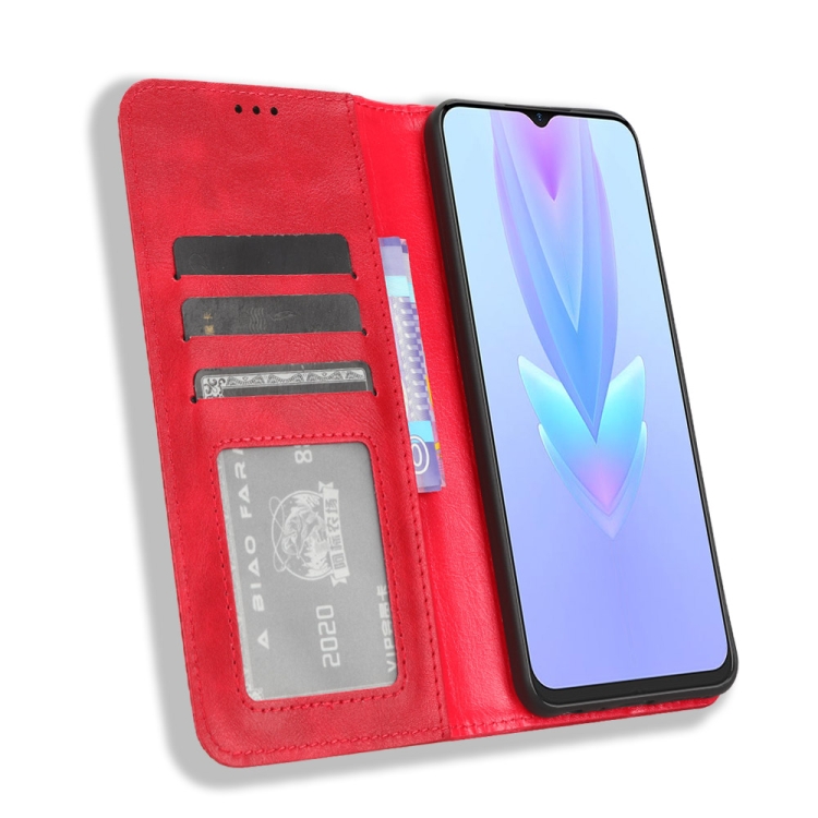 Funda de Cuero para Tecno Spark 10 5G con Hebilla Magnética y Textura Retro (Rojo)