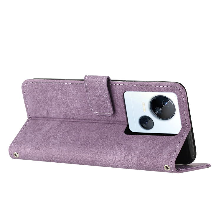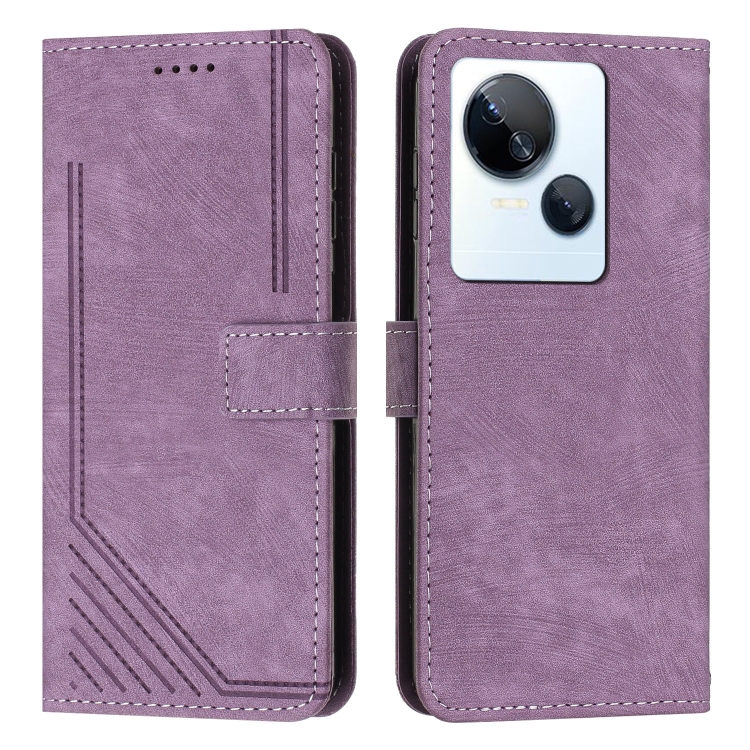 Funda de Cuero para Tecno Spark 10 5G con Cordón y Patrón Stripe (Púrpura)