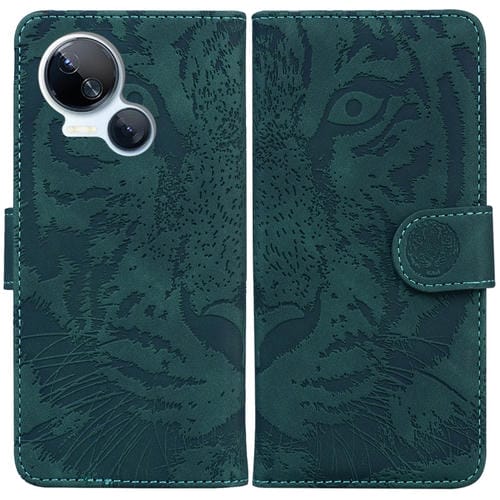 Funda Flip de Cuero para Tecno Spark 10 5G Tiger con Patrón Embossing (Verde)