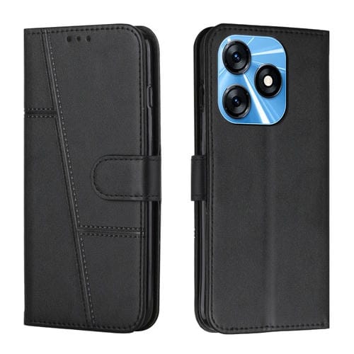 Funda de Cuero para Tecno Spark 10 con Hebilla y Textura de Becerro Cosida (Negro)