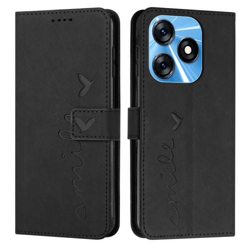 Funda de Cuero para Tecno Spark 10 Skin Feel con Patrón de Corazón (Negro)