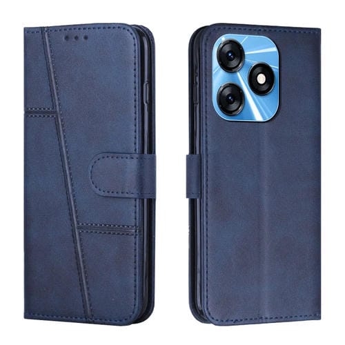 Funda de Cuero para Tecno Spark 10C con Costura y Hebilla (Azul)