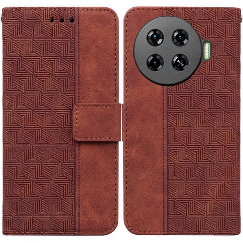 Funda de Cuero para Tecno Spark 20 Pro+ 4G con Relieve Geométrico (Marrón)