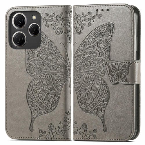 Funda de Cuero para Tecno Spark 20 Pro Butterfly Love Flower en Relieve (Gris)