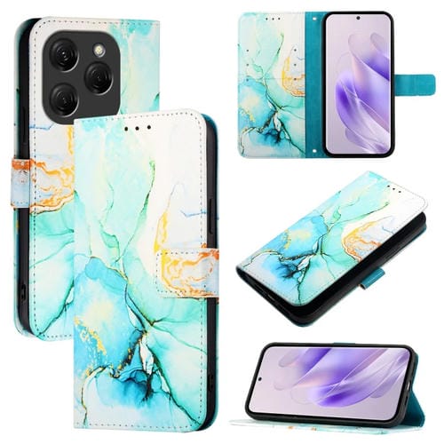 Funda de Cuero con Tapa para Tecno Spark 20 Pro Pt003 con Patrón de Mármol (Verde)
