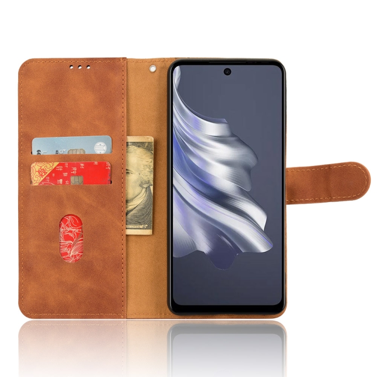 Funda de Cuero con Tapa Magnética para Tecno Spark 20 Pro (Marrón)
