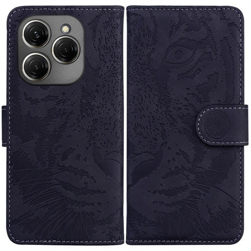 Funda de Cuero con Tapa para Tecno Spark 20 Pro Tiger Patrón en Relieve (Negro)