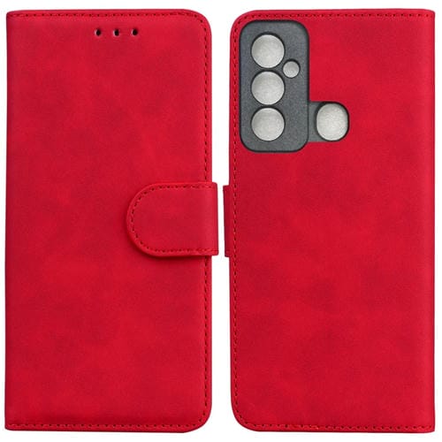Funda de Cuero con Tapa para Tecno Spark 6 Go Skin Feel Pure Color (Rojo)