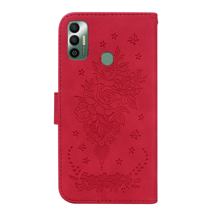 Funda para Tecno Spark 7 Butterfly Rose carcasa de cuero (Rojo)