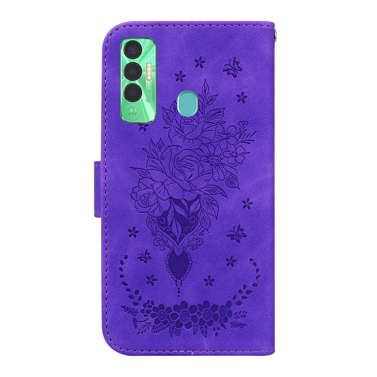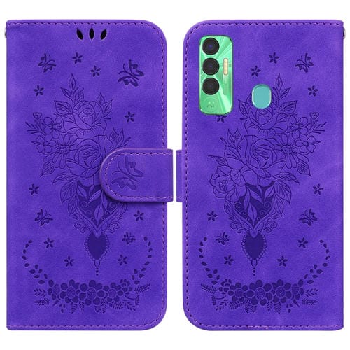 Funda para Tecno Spark 7P Butterfly Rose Foothip en Relieve de Cuero (Púrpura)