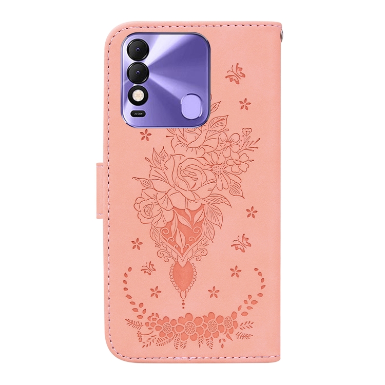 Funda de piel para Tecno Spark 8 y Spark 8T con diseño Butterfly Rose (Rosa)