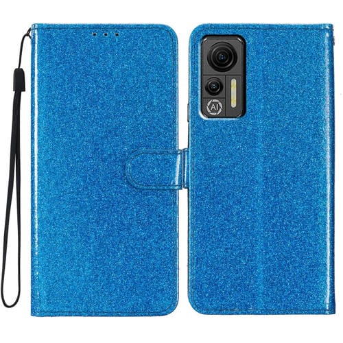 Funda de Cuero para Ulefone Note 14 con Tapa y Purpurina en Polvo (Azul)