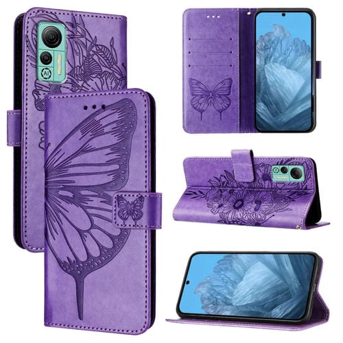 Funda de Cuero para Ulefone Note 14 con Mariposa en Relieve (Púrpura)