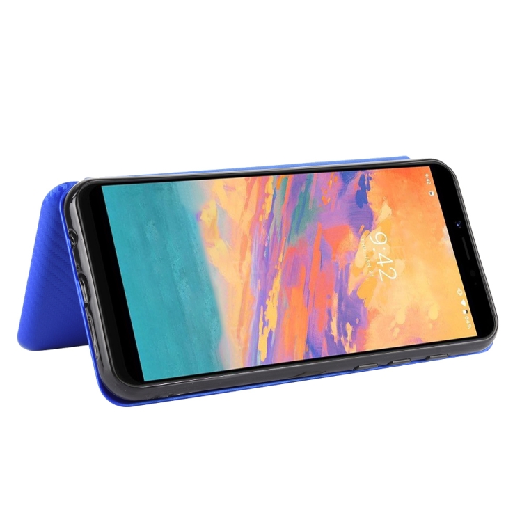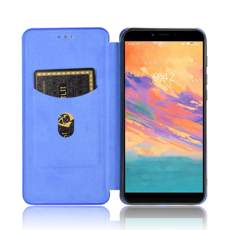 Funda para Umidigi A3S Cuero con Tapa Magnética Horizontal Textura Fibra Carbono TPU + PC + PU con Ranura para Tarjeta (Azul)