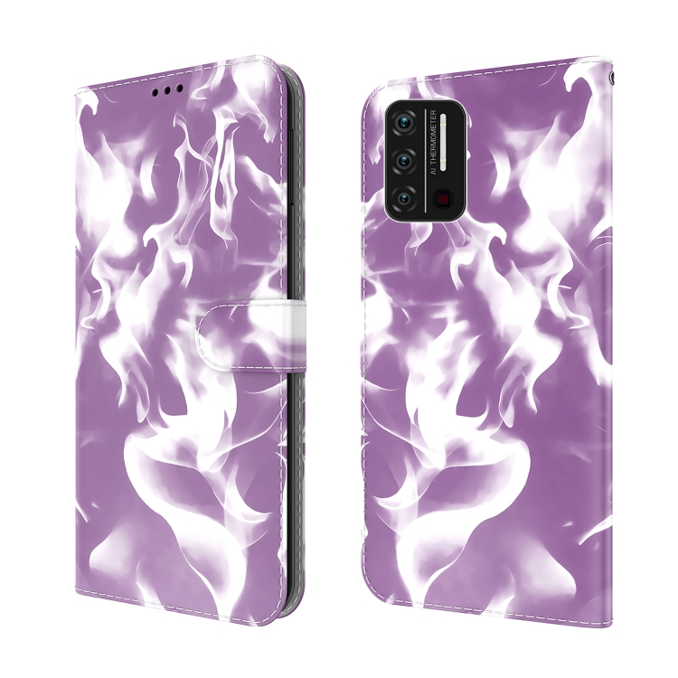 Funda de Cuero para Umidigi A7S Cloud Fog Stattern con Soporte y Ranura para Tarjeta y Billetera (Púrpura)