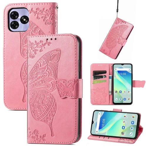 Funda de Cuero para Umidigi G5 Butterfly Love Flower con Relieve (Rosa)