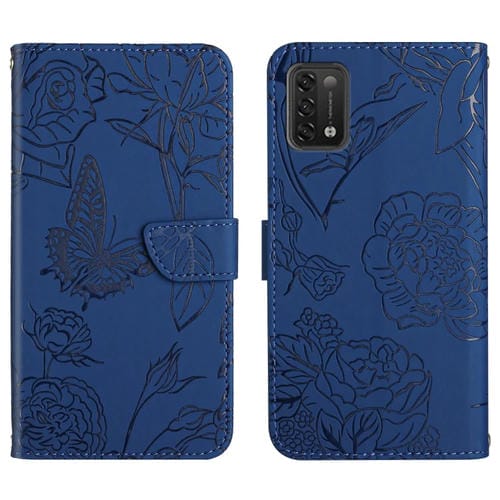 Funda de Cuero para Umidigi Power 5 con Relieve de Peonía y Mariposa (Azul)