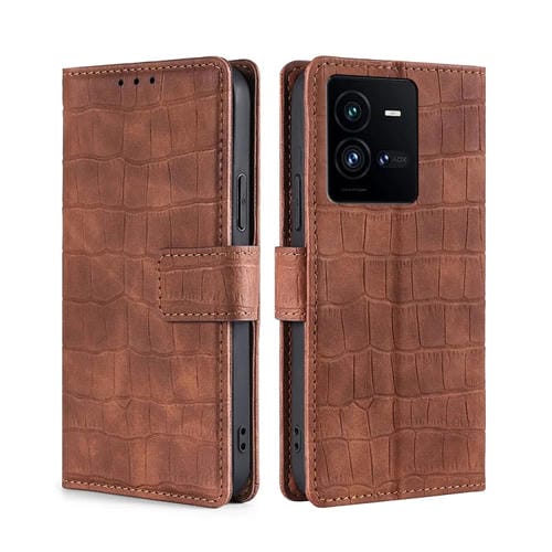 Para Vivo Iqoo 10 Pro 5G Skin Feel Cocodrilo Cierre Magnético Funda de Cuero para Teléfono (Marrón)