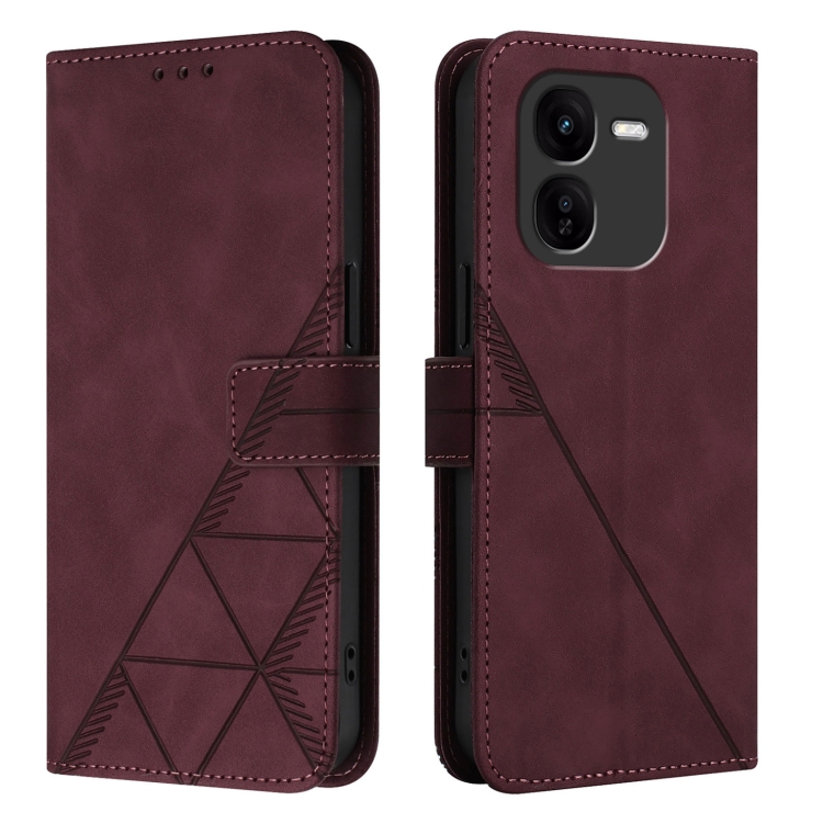 Para Vivo Iqoo Z9X Crossbody Funda para Teléfono de Cuero con Tapa En Relieve 3D (Rojo Vino)