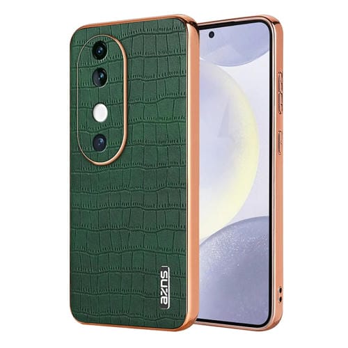 Para Vivo S19 Azns Estuche para Teléfono con Textura de Cocodrilo y Marco Galvanizado (Verde)