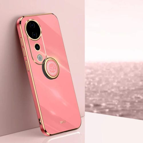 Para Vivo S19 Pro Xinli Straight 6D Plating Gold Edge TPU Funda a Prueba de Golpes con Soporte para Anillo (Rojo Espino)