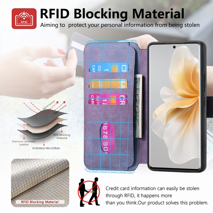 Para Vivo V40 Lite Caseneo Magsafe Rfid Funda de Cuero Retro Antirrobo para Teléfono (Púrpura)