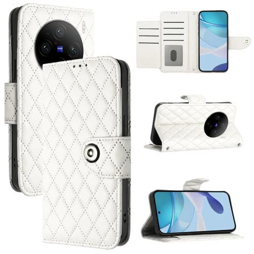 Para Vivo X100 Pro Funda de Cuero con Tapa con Textura Rómbica y Cordón (Blanco)