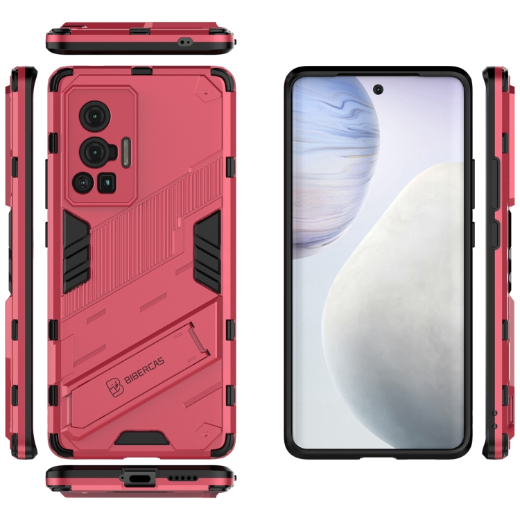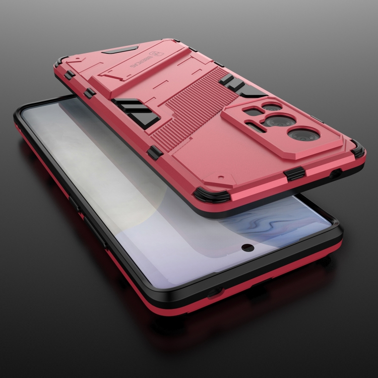 Para Vivo X70 Pro Punk Armor 2 En 1 PC + Funda a Prueba de Golpes TPU con Titular Invisible (Rojo Claro)