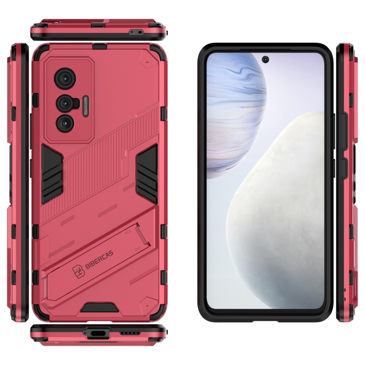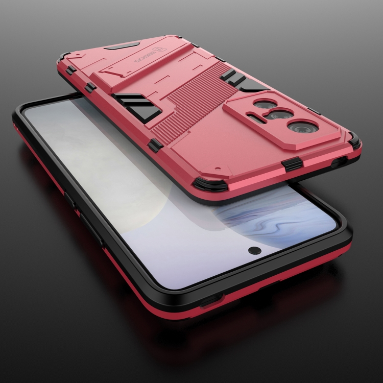 Para Vivo X70 Punk Armor 2 En 1 PC + Funda a Prueba de Golpes TPU con Titular Invisible (Rojo Claro)