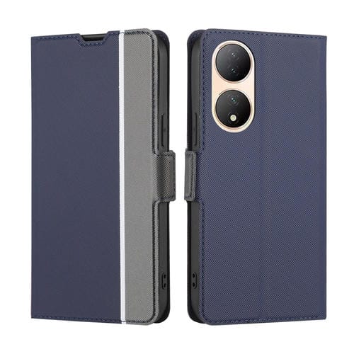 Para Vivo Y100 5G Twill Texture Side Hebilla Funda de Cuero para Teléfono (Azul)