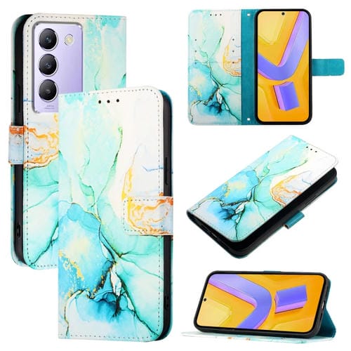 Para Vivo Y100 Idn / Y200E Pt003 Funda para Teléfono de Cuero con Tapa con Patrón de Mármol (Verde)