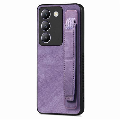 Para Vivo Y100 Retro Muñequera Funda Trasera de Cuero para Teléfono (Púrpura)