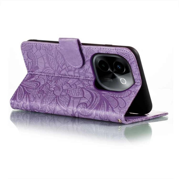 Para Vivo Y200 5G Funda para Teléfono de Cuero con Tapa y Estampado de Flores de Encaje (Púrpura)