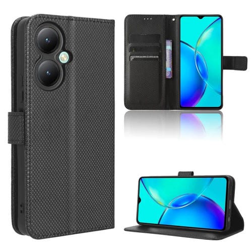 Para Vivo Y35 + Caja de Teléfono de Cuero con Textura de Diamante (Negro)