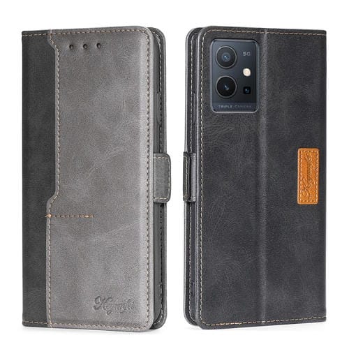 Para Vivo Y52T Caja de Teléfono de Cuero con Hebilla Lateral de Color de Contraste (Negro + Gris)