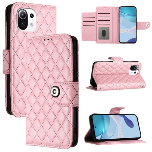 Para Xiaomi 11 Lite 5G Ne Funda para Teléfono con Tapa de Cuero con Textura Romboidal y Cordón (Rosa)