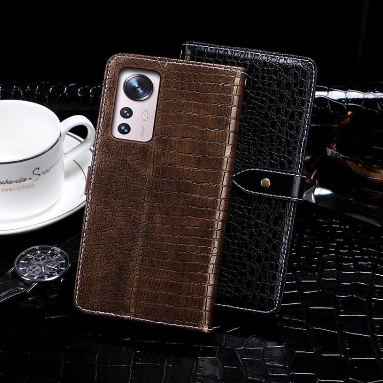 Para Xiaomi 12 Pro Idewei Crocodile Textura Horizontal Flip Phone Phone Case (azul oscuro)