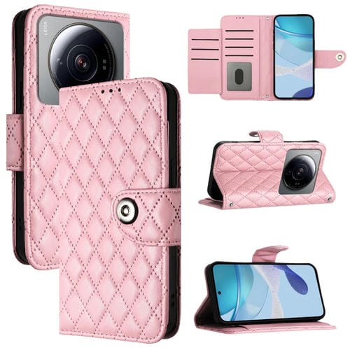 Para Xiaomi 12S Funda de Cuero con Tapa con Textura Ultra Rómbica y Cordón (Rosa)